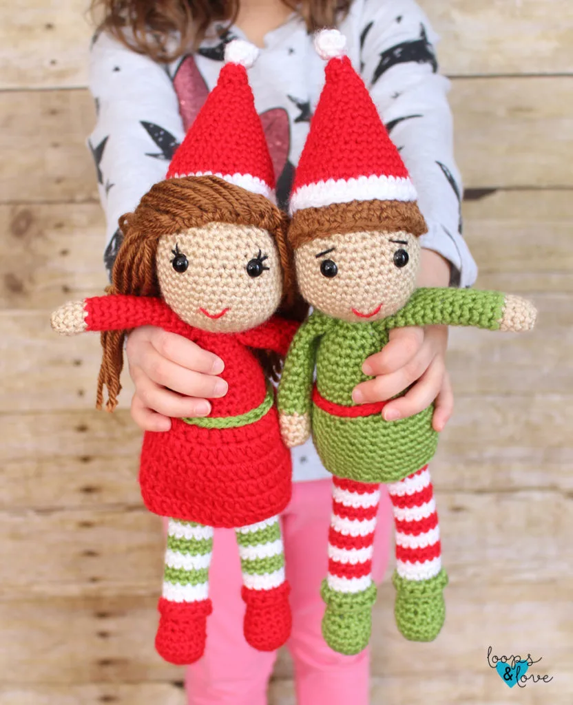 Meet Trixie and Twinkle, Santa’s little helpers! These elves are bound to put a smile on your face and get you thinking about the holidays, even if it’s only July! This Elf Amigurumi pattern was released as a Crochet Along last winter, but I’ve compiled all of the parts together into one post to make it easier for you to find it all without having to visit multiple posts.
