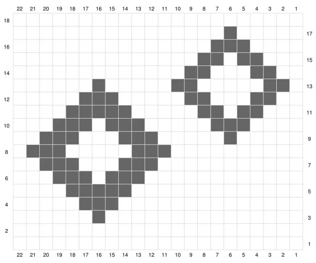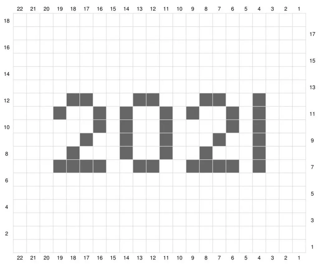 Below, you’ll see the graphs that I created for the New Year’s Mug Rugs. Each box in the graph counts as one SC stitch. This means you’ll be working 18 rows of 22 stitches, following the color changes in the graph.