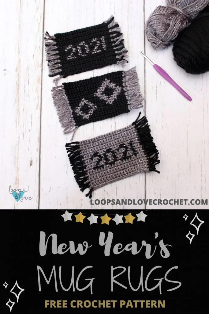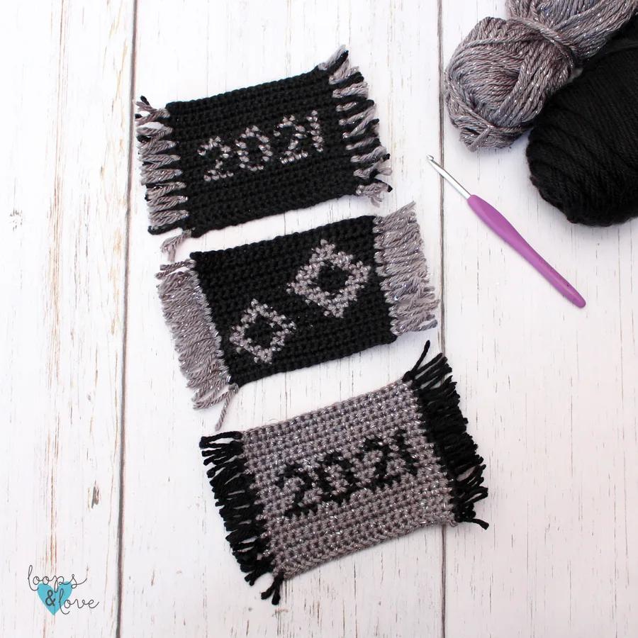 The New Year’s Mug Rugs crochet pattern is available for FREE on this website. If you’d like an ad-free, printable PDF version, you may purchase it for a small fee from my Etsy or Ravelry shops. Thank you so much for supporting Loops & Love Crochet!