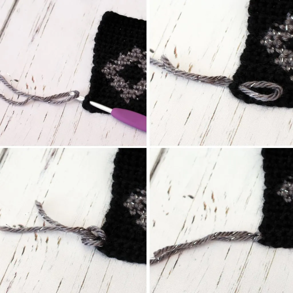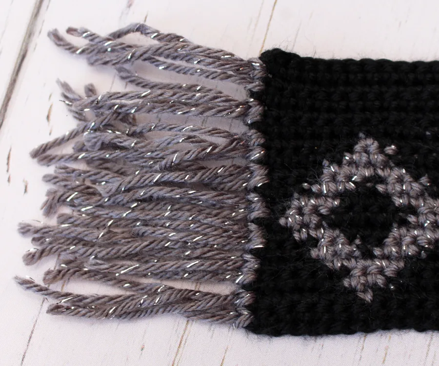 These New Year’s Mug Rugs are a fun way to ring in the New Year! They are made in tapestry crochet technique, which means that you’ll be alternating between the two colors of yarn and carrying the unused color along with you under your stitches. The fun fringe on the edges is added at the end to complete your little mug rugs!