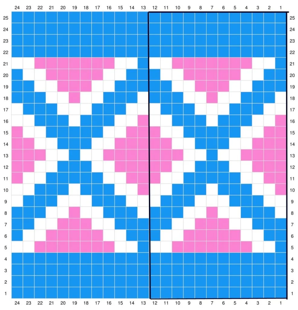 - The graph is 24 stitches wide; however, the bag is 72 stitches around. The graph will need to be repeated two more times.