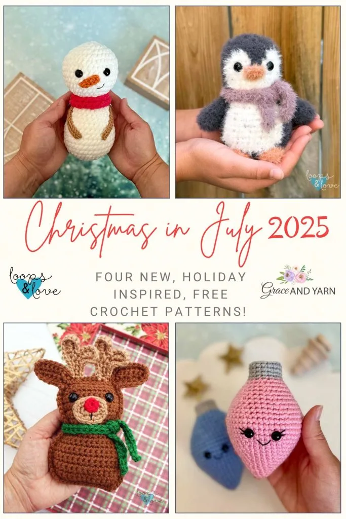 All four Christmas in July 2025 patterns will be linked right here on their release dates—so be sure to check back each Monday in July for something new! You’ll always be able to access all four free patterns from this post, even after the event wraps up, so it’s a great one to bookmark or pin for later.