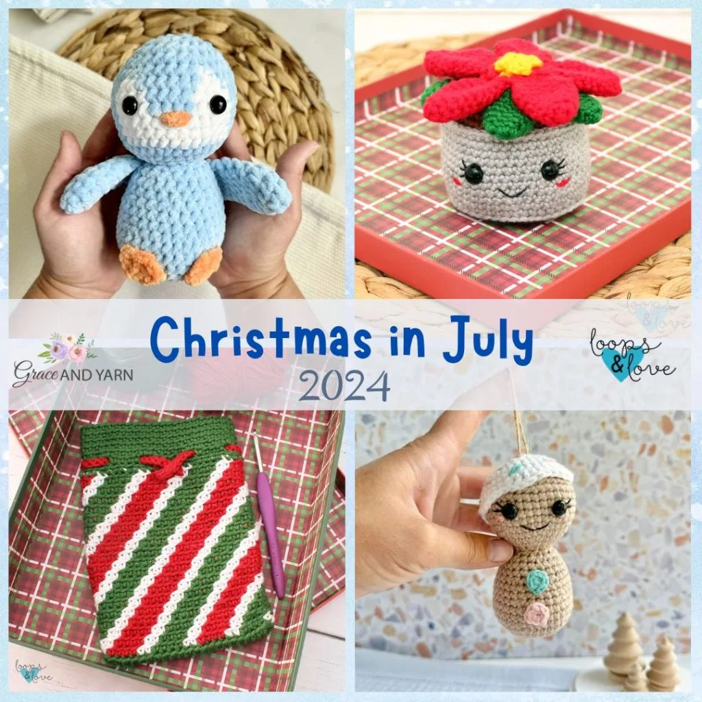 There will be 4 new crochet patterns released during our Christmas in July 2025 event this year. Two patterns from Stephanie and two patterns from myself. We will be sharing one new pattern each Monday for the month of July!