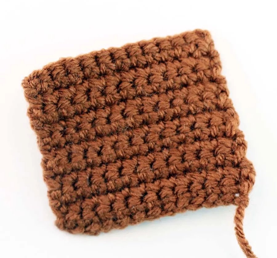 Row 1: In brown yarn, ch 13, SC in 2nd ch from hook and in each st across (12)