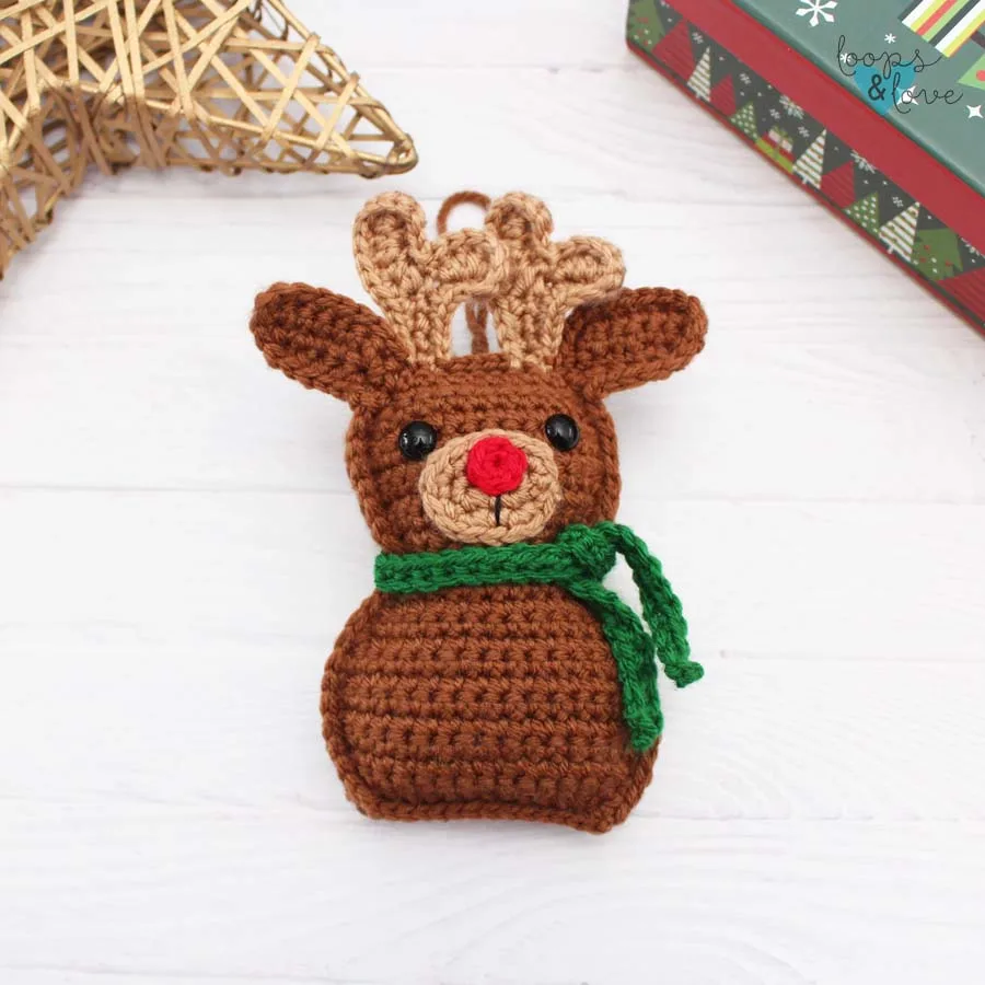 To give your reindeer a scarf, you’ll need a chain long enough to go around the reindeer’s neck and tie a knot. Please note that you may need to change the number of stitches in your starting chain depending on scarf length preference and crochet tension.