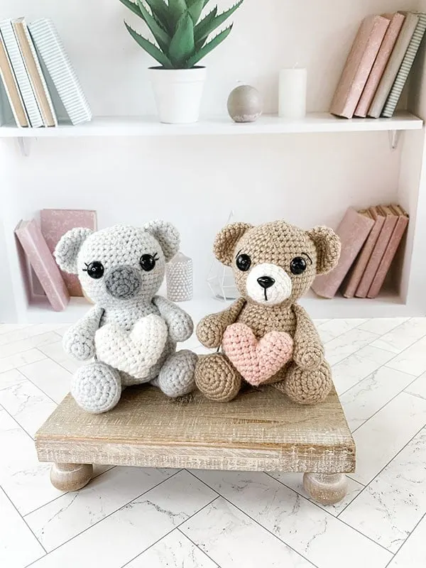 I love these Valentine Bears! There are two pictured here, but there are actually three different bears you can make in the set! A koala, teddy bear, or a panda! They are the perfect tiny project to work up quick and gift to someone special!