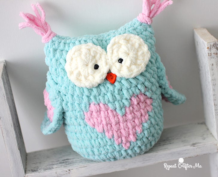 Another soft and squishy animal here! This Valentine owl is a sweet little project that works up quickly in the blanket yarn! Display your owl on a shelf or gift it to a special little someone! This one is also super huggable and cuddle approved!