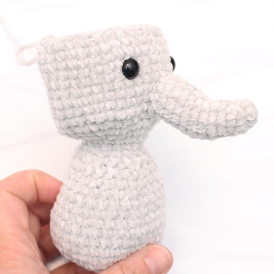 Fasten off. Leave a long tail to sew the ear onto the elephant’s head.